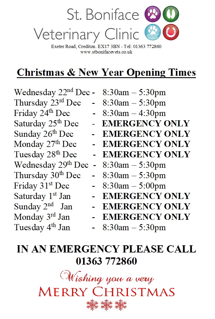 Please see below for our Christmas and New Year opening times